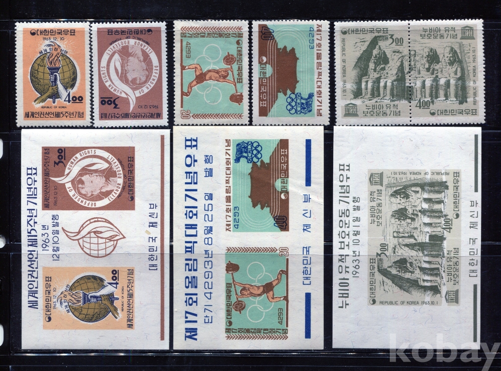 - [시트/우표] 1960년대 미사용 페어우표/시트모음 3종 ( MNH : Mint Not Hinged,뒷면 힌지자국없는 깨끗한 상태)