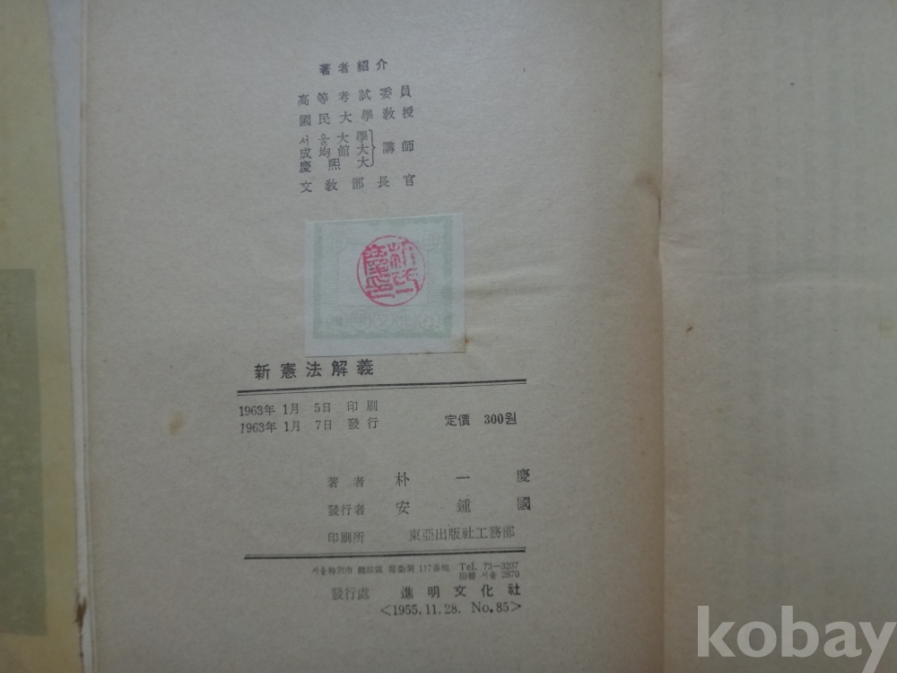 신 헌법 해의 (1963년, 박일경 저, 진명문화사)