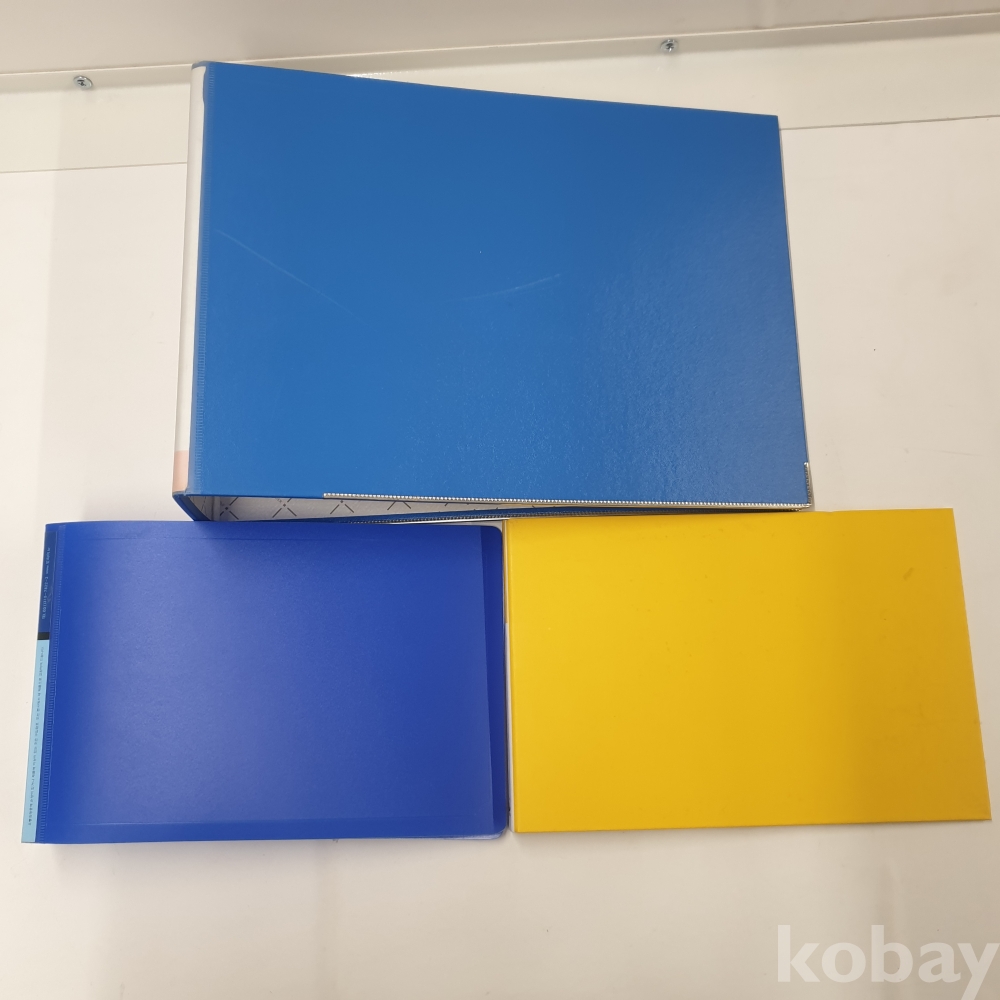 [*천원행복*] J - 2 -0128 2공 파이프 바인더 1개 (33*23*10), 작은 바인더 2개 (파랑24.5*16*4, 노랑 24.5*16*2)