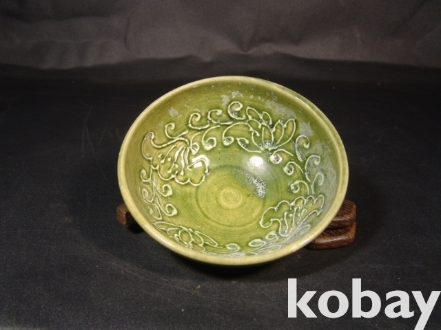 do4487 길주요(吉州窯) 녹유양각 화문다완(花紋茶碗)