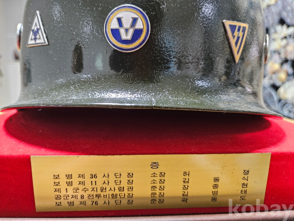 이 철모는 보병 11사단장(1985.6.10~1987.6.9)을 지낸 이중형 소장의 영전을 축하하는 것이었다. 테두리에는 각 부대의 코인이 둘러쳐 있고 보병 36 사단장 허쟁, 11사단장 김동식, 1군수지원사령관 장종현, 공군8전투비행단장 김병태, 보병 76사단장 곽동도 장군이 재직 기념에 참여하였다.
