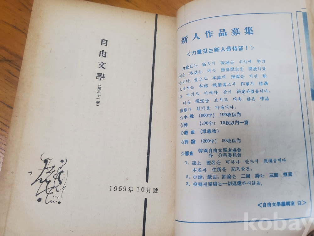 1. 자유문학 통권 31호, 한국자유문학자협회, 1959년, 272쪽, 상태 상, 사진 참조