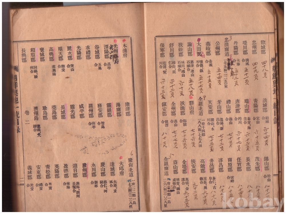 목록과 초반부 내용에 펜으로 덧붙인 글씨나 숫자가 있으나