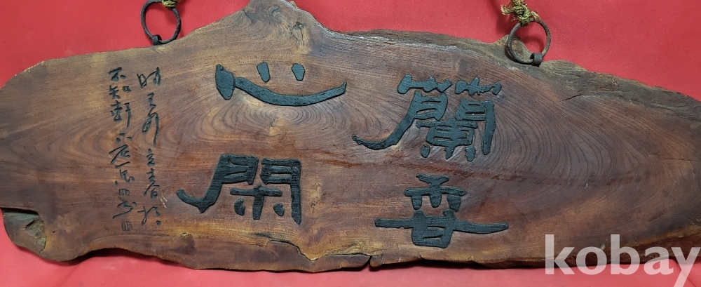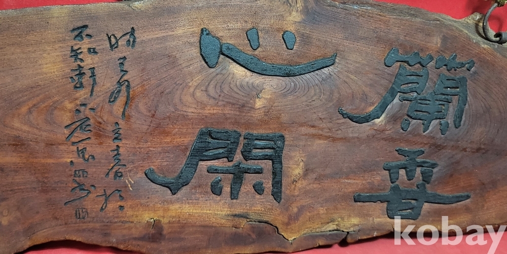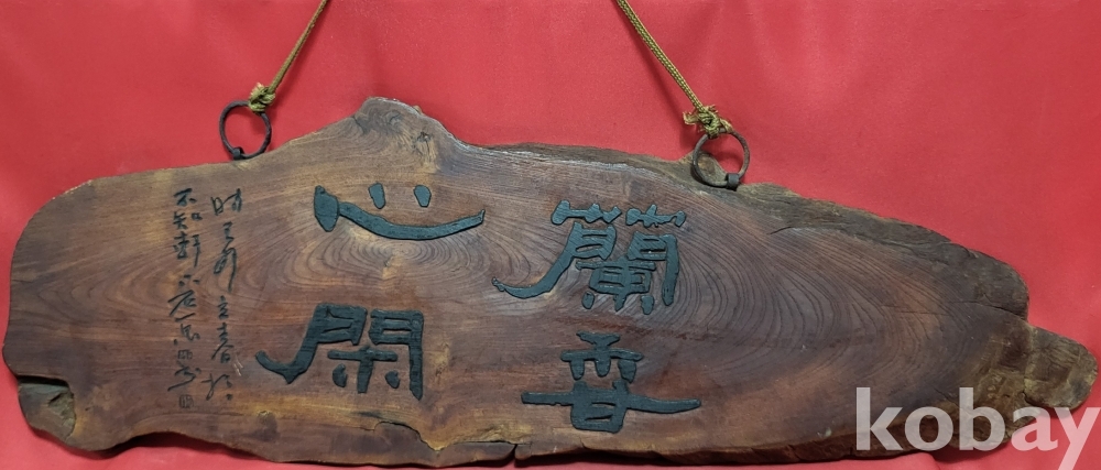 괴목나무에 서각된 명필 난향심한(蘭香心閑) 서각품입니다,