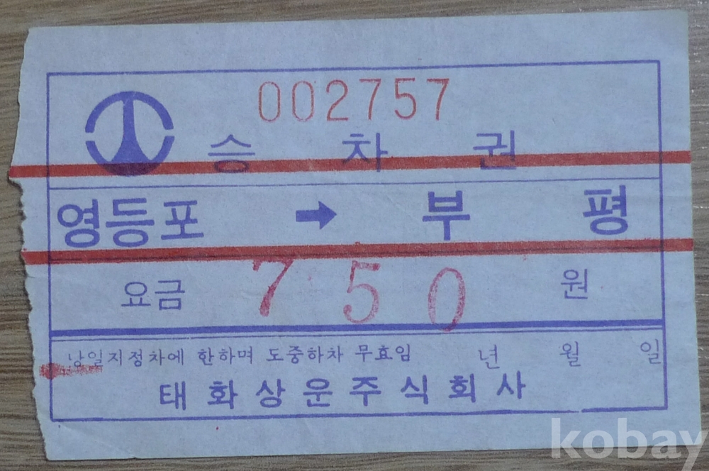 영등포 - 부평 태화상운 승차권