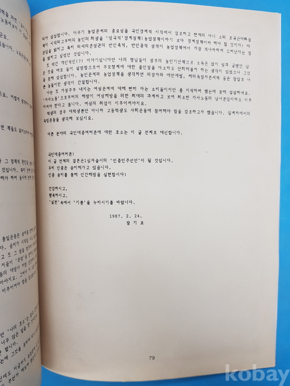 [민주화운동 자료] 해방의 논리와 자주사상(항소이유서 보충서) 장기표/1987년/79쪽