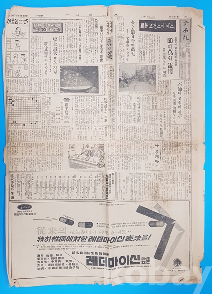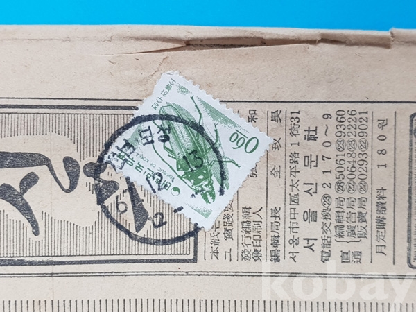 신문띠지로 발송된 것이나 주소를 적은 띠지는 없어지고 신문에 우표만 첩부된 것입니다.