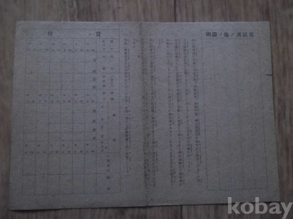 소화18년 조선총독부체신국 발행 보험증서