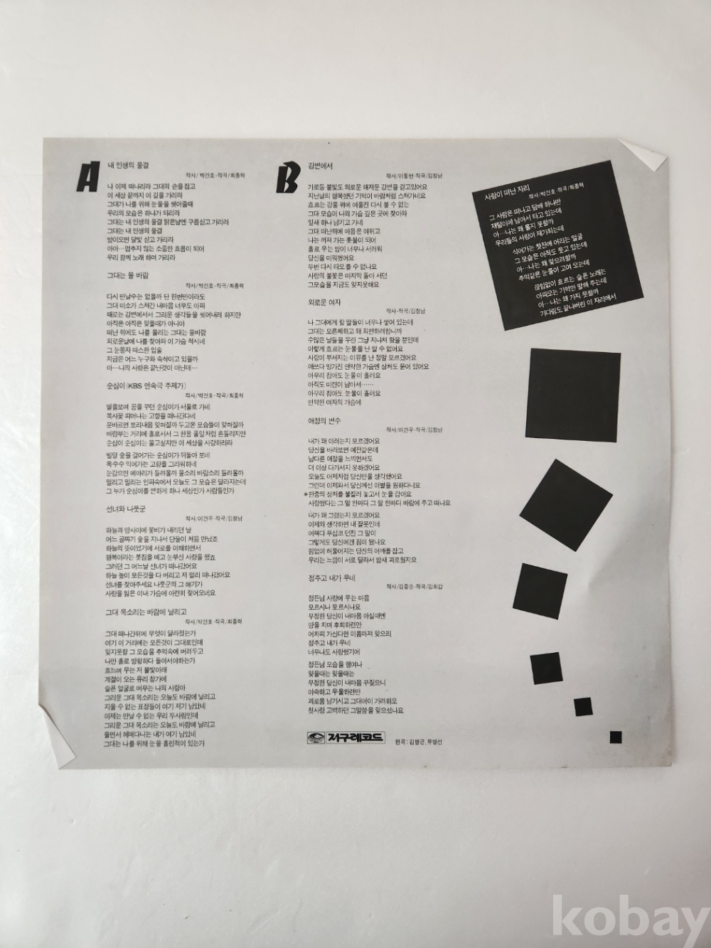 | 자켓상태 | EX : 약간의 마모, 모서리 찢김 존재 | 음반상태 | EX : 재생에 영향 없는 가벼운 기스 존재 | 발매정보 | 알수없음 | 가사지여부 | 유 |