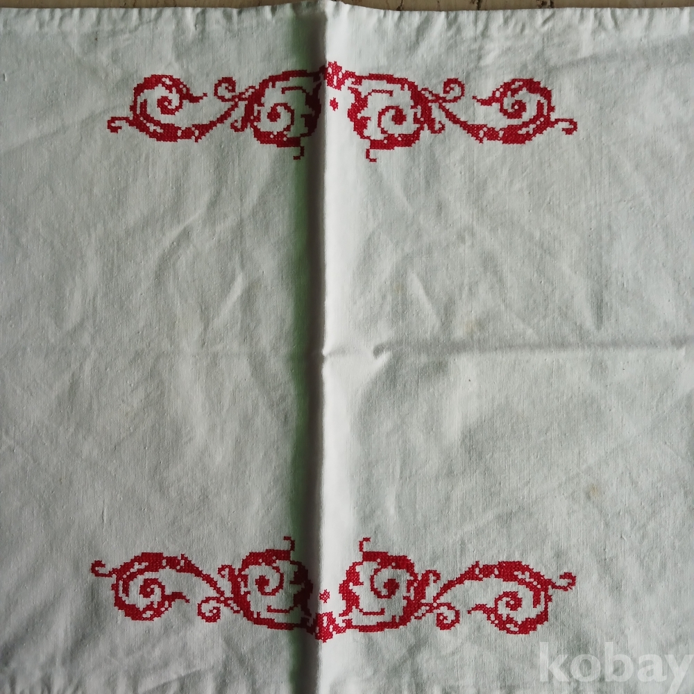 근대 십자수예 상보 덥개 실사용가능 다실찻집 백삭 목면 광목 규방공예
