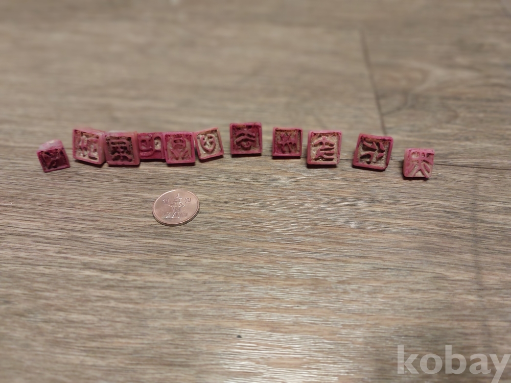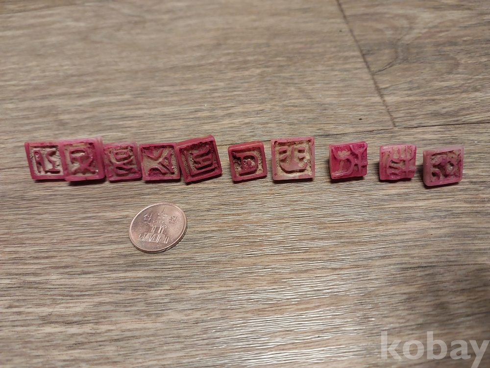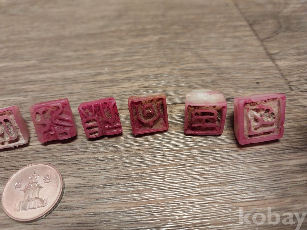 세월감 있는 옥돌 활자 30점입니다.