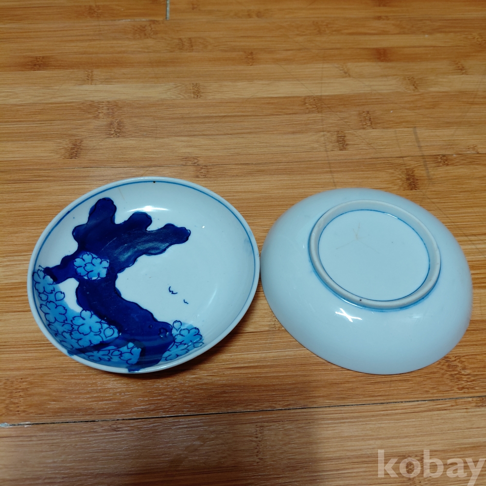 일제강점기 시대 제작사용 청화백자 나무그림 접시두점 일괄 올려드립니다