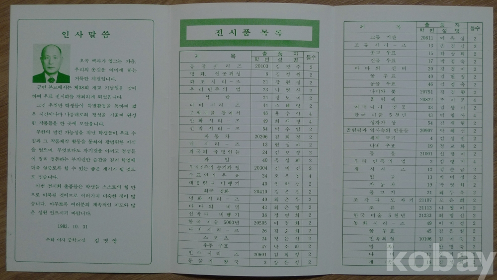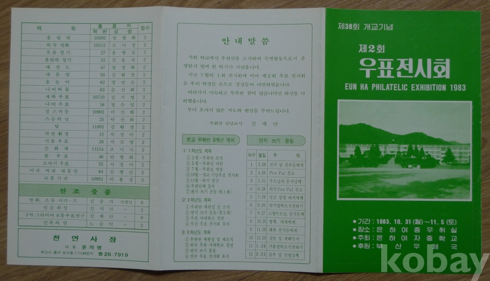 1983년 부산 은아 중학교 개교 38주년 개교 기념 제2회 우표 전시회 전단지