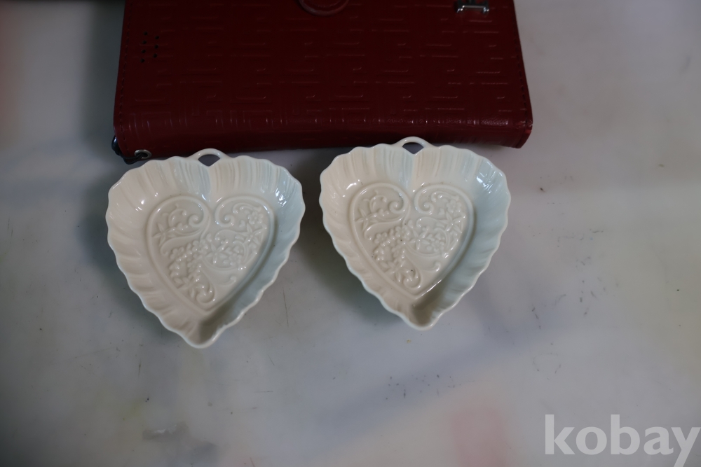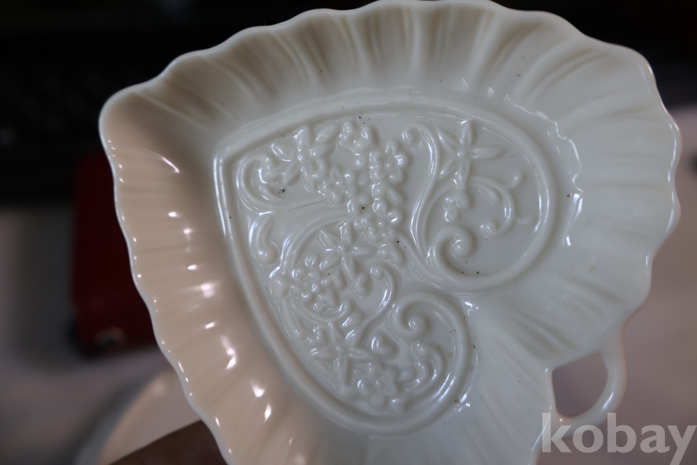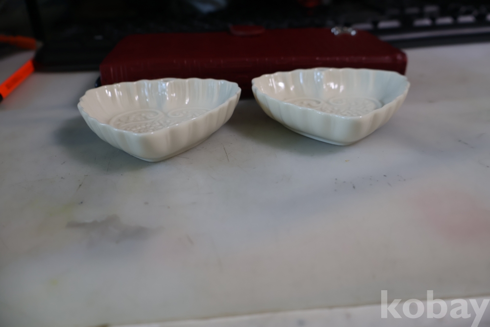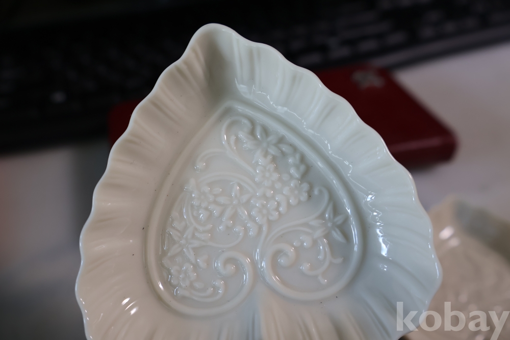 문양 디자인 섬세 정교 한 명품 도자기 2 세트 임니다 고리 형태의 요철 된 명물 임니다