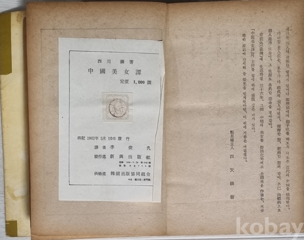 중국미녀담-서천만 저 이준범 역1962년초판 신흥출판사 발행