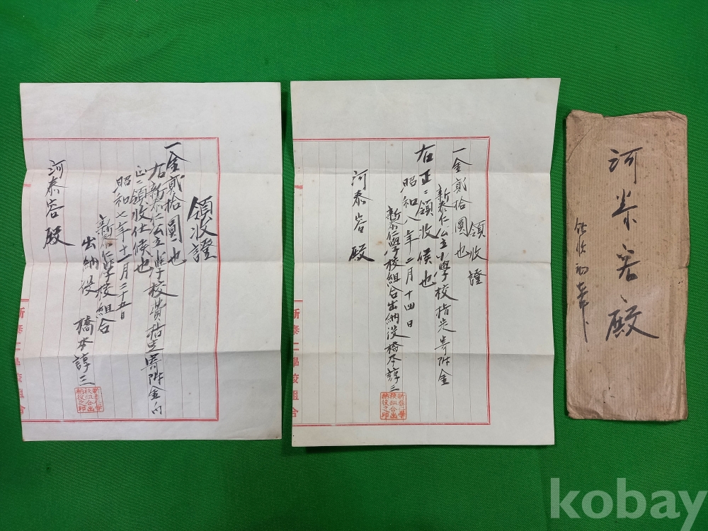 이 문서는 1932년(소화 7년), 1933년(소화 8년)에 발행된 영수증(領收證)입니다.