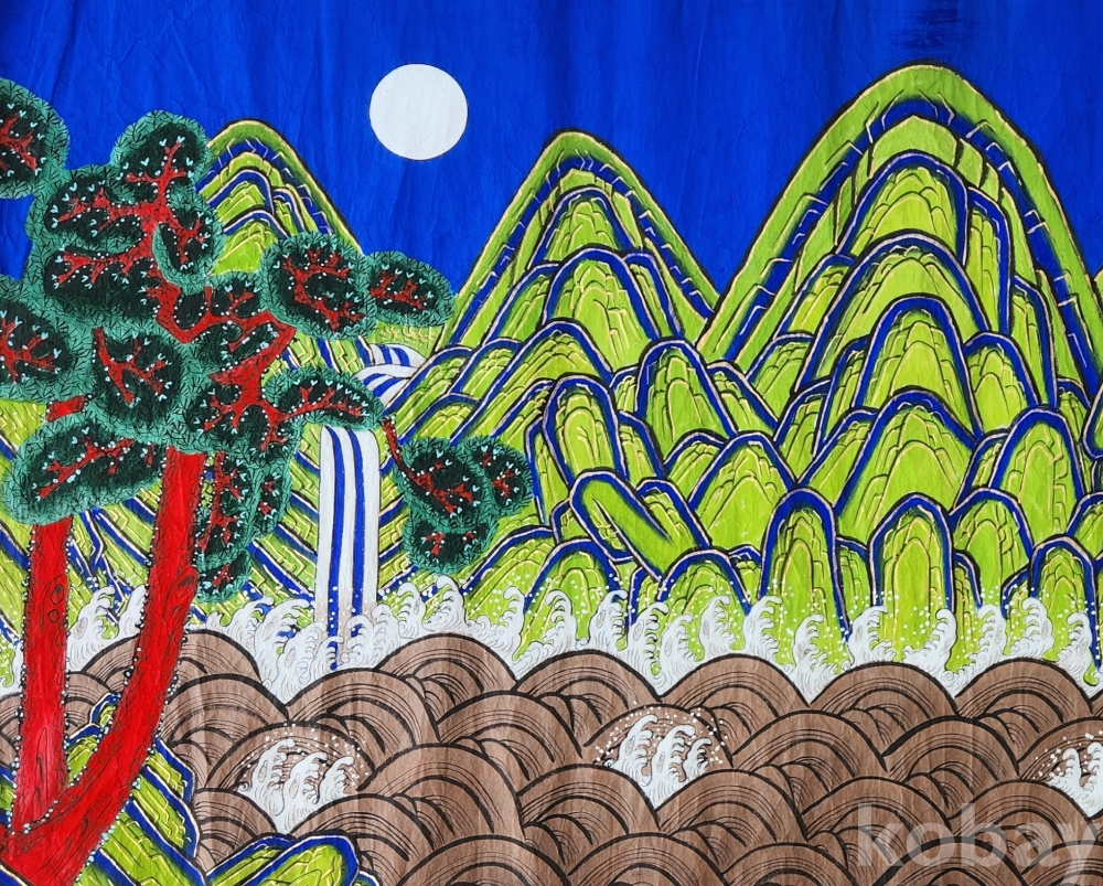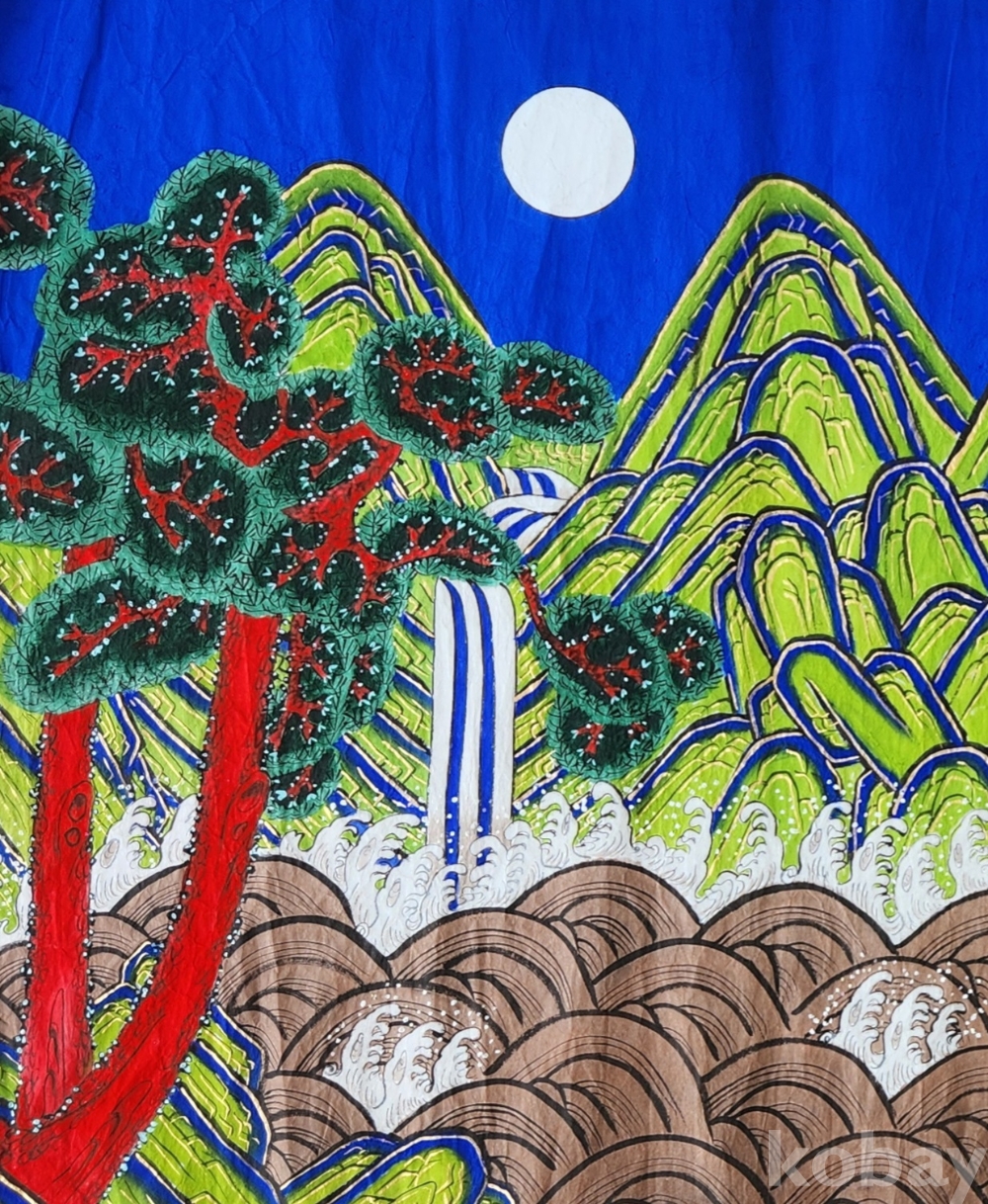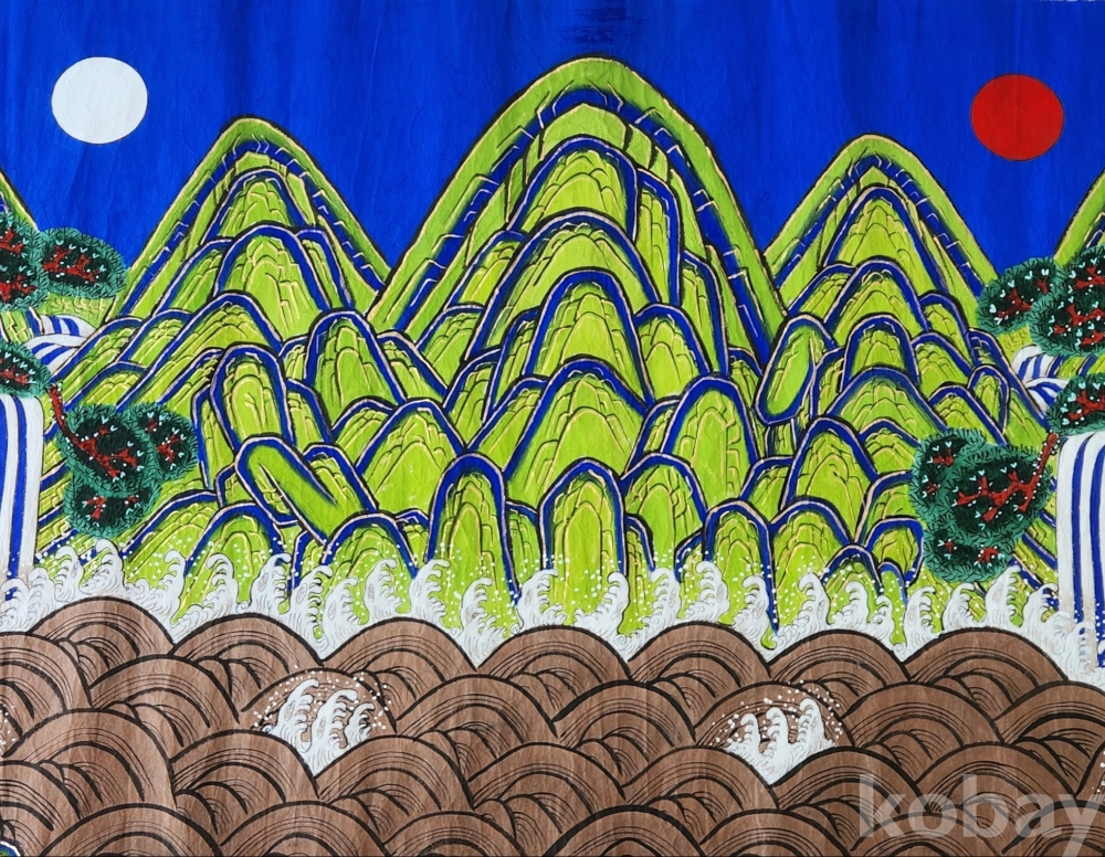 이다.조선시대의 병풍으로 많이 쓰였다 한다. 일단 왼쪽엔 달, 오른쪽엔 해가 떠있는 특이한