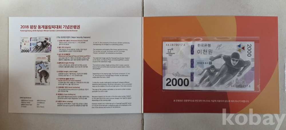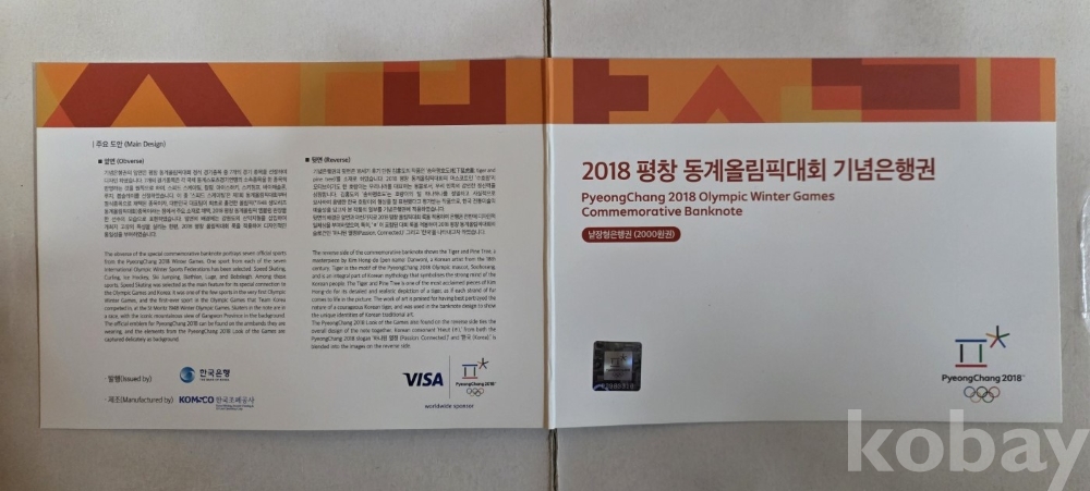 -대한민국 평창동계 올림픽기념 지폐첩 초판 AAA08포인트 입니다.