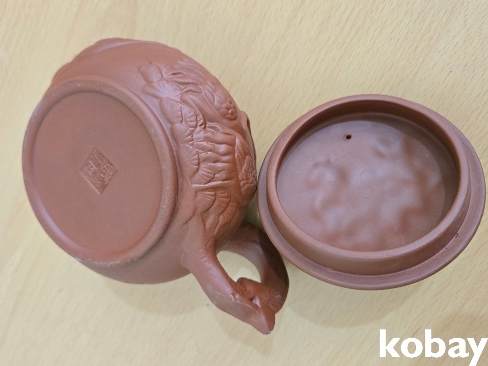 학 모양 손잡이가 있는 자사 주전자 입니다.