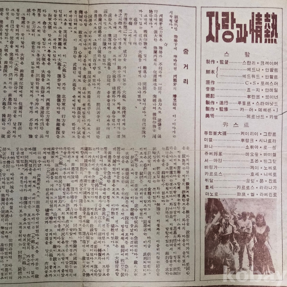 [희귀 근대사 자료] / (영화포스터/영화카드/리플렛/광고카드 등) 1957년 / 자랑과 정열(프랭크 시나트라 소피아 로렌)