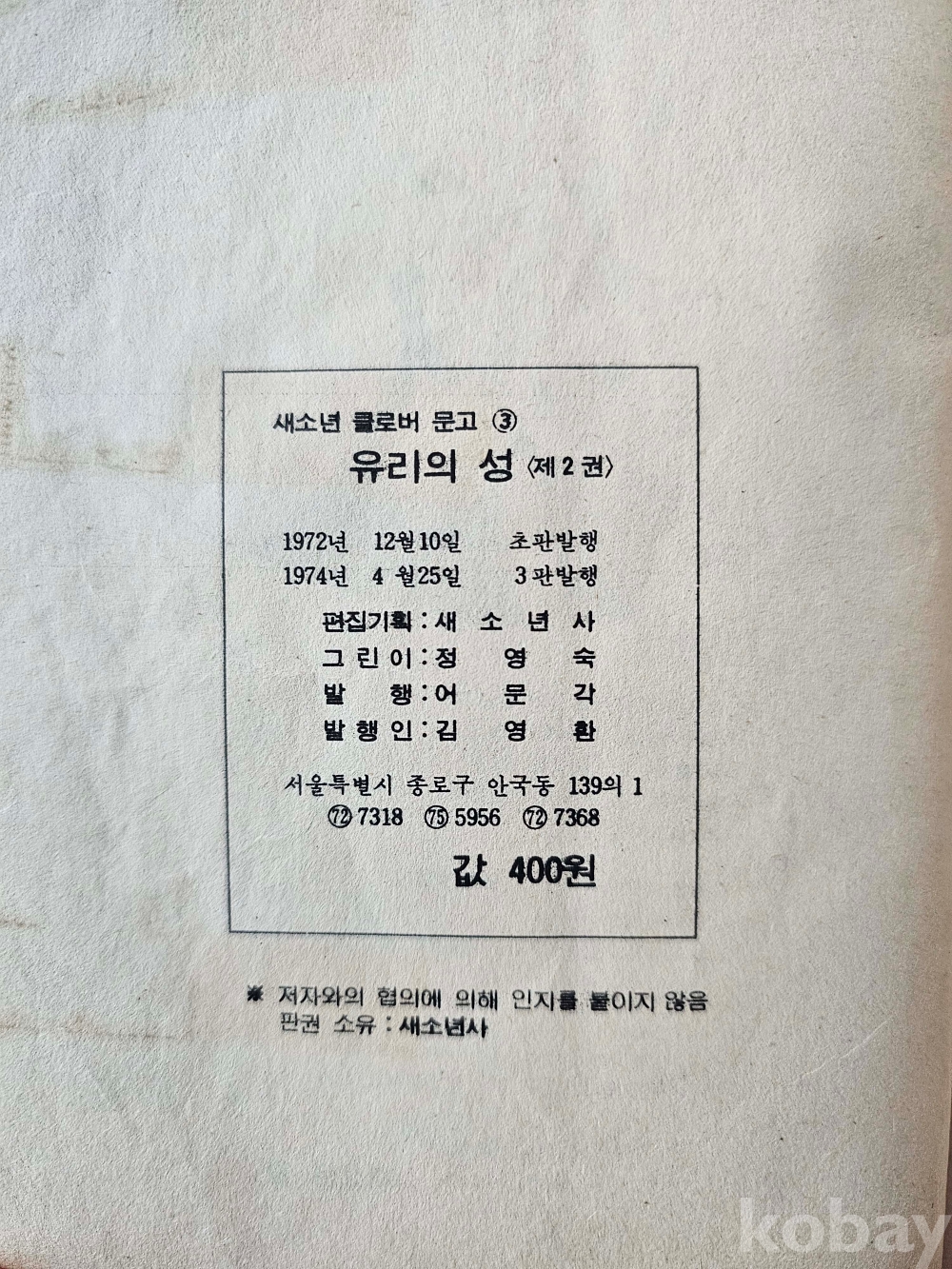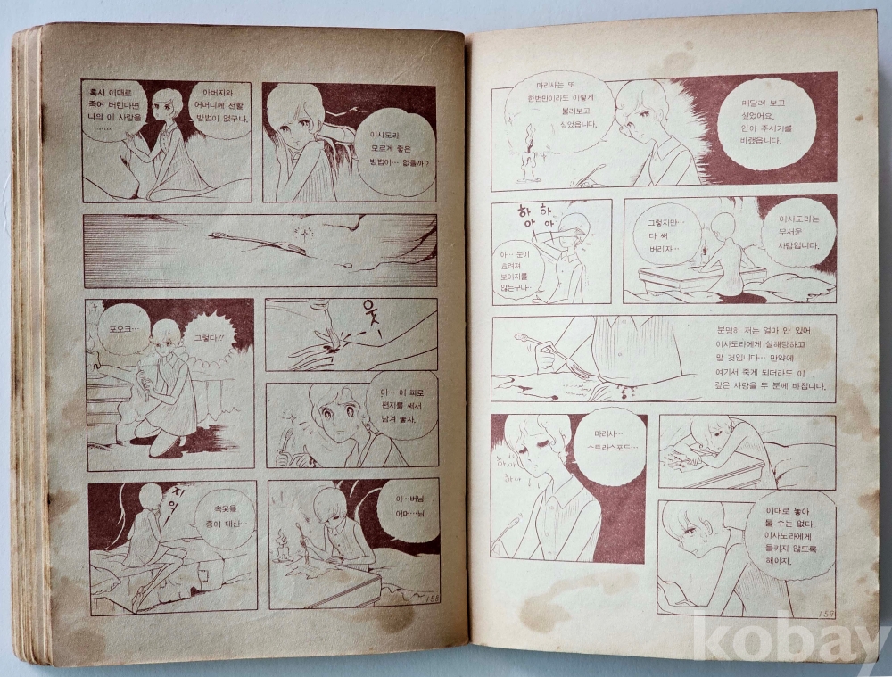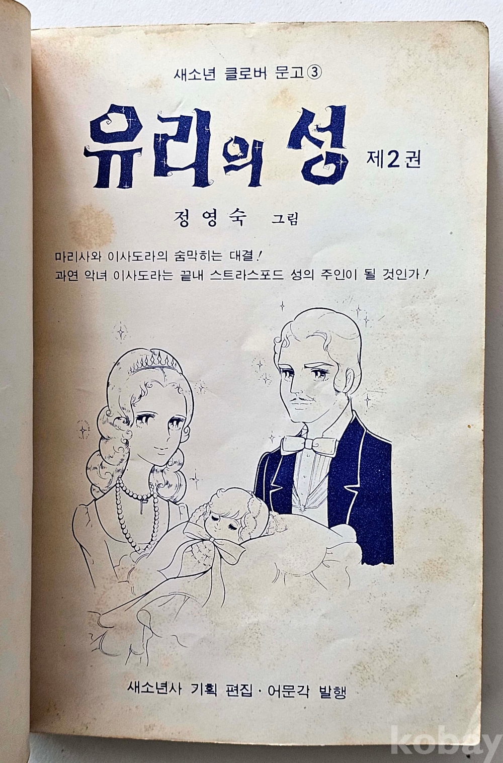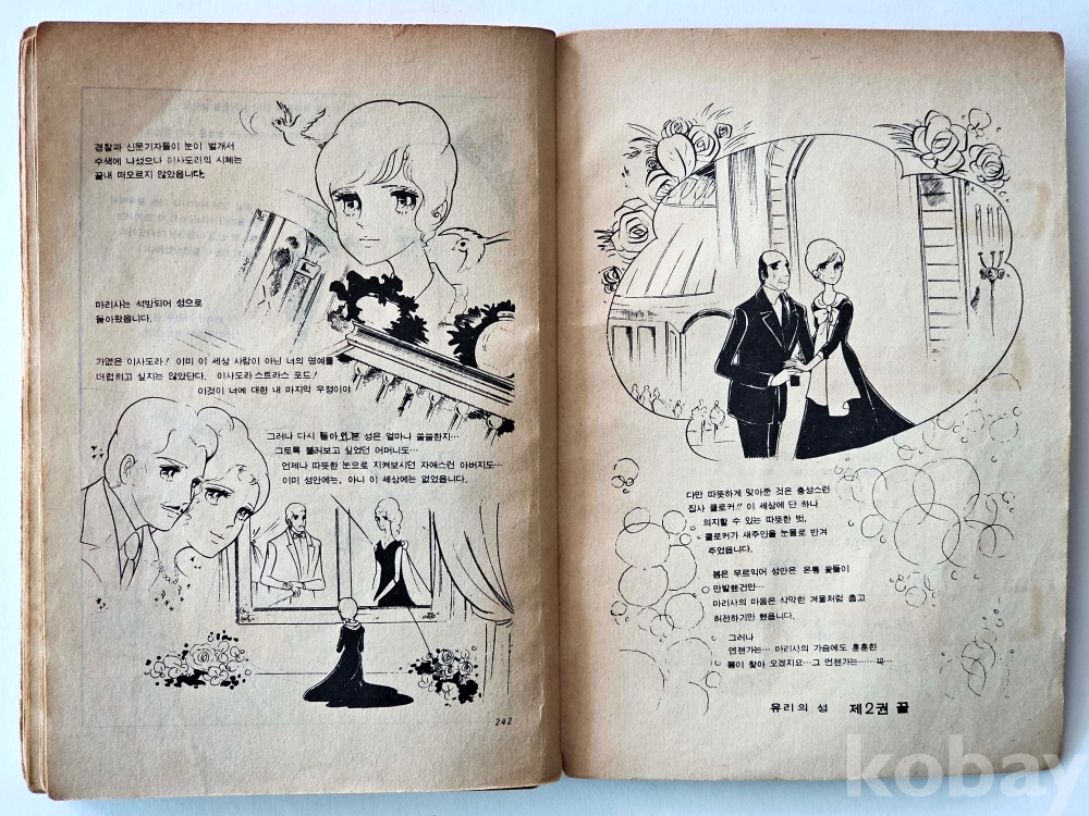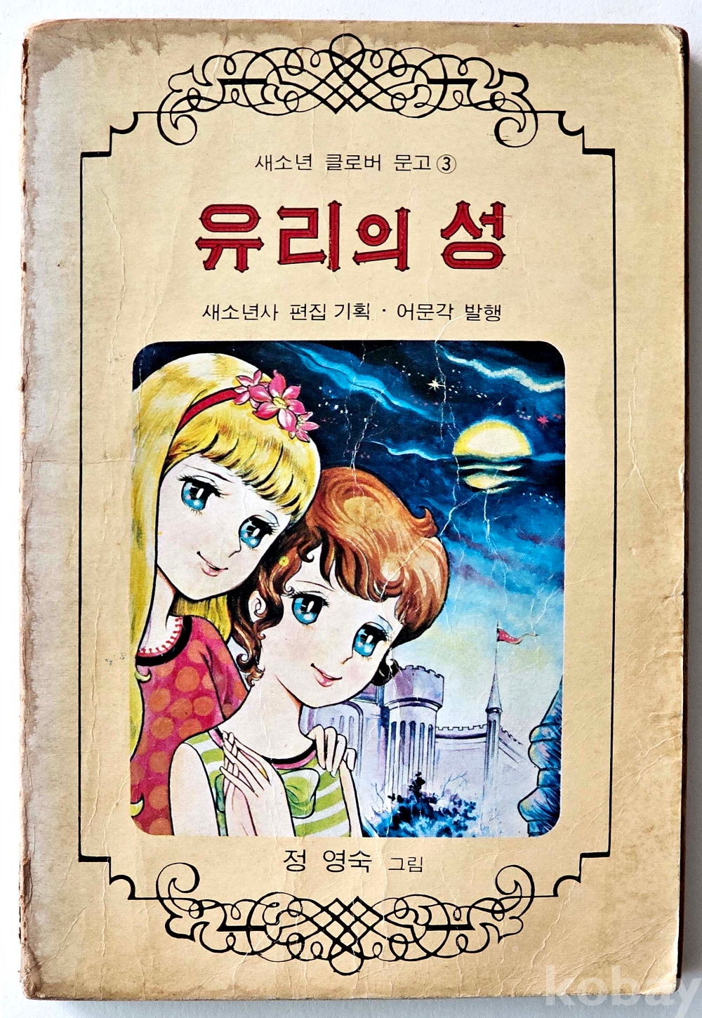 물 품 명 | 유리의 성 2편 / 정영숙 만화 / 1974년 / 클로버문고 초기 버전 표지 / 어문각 |