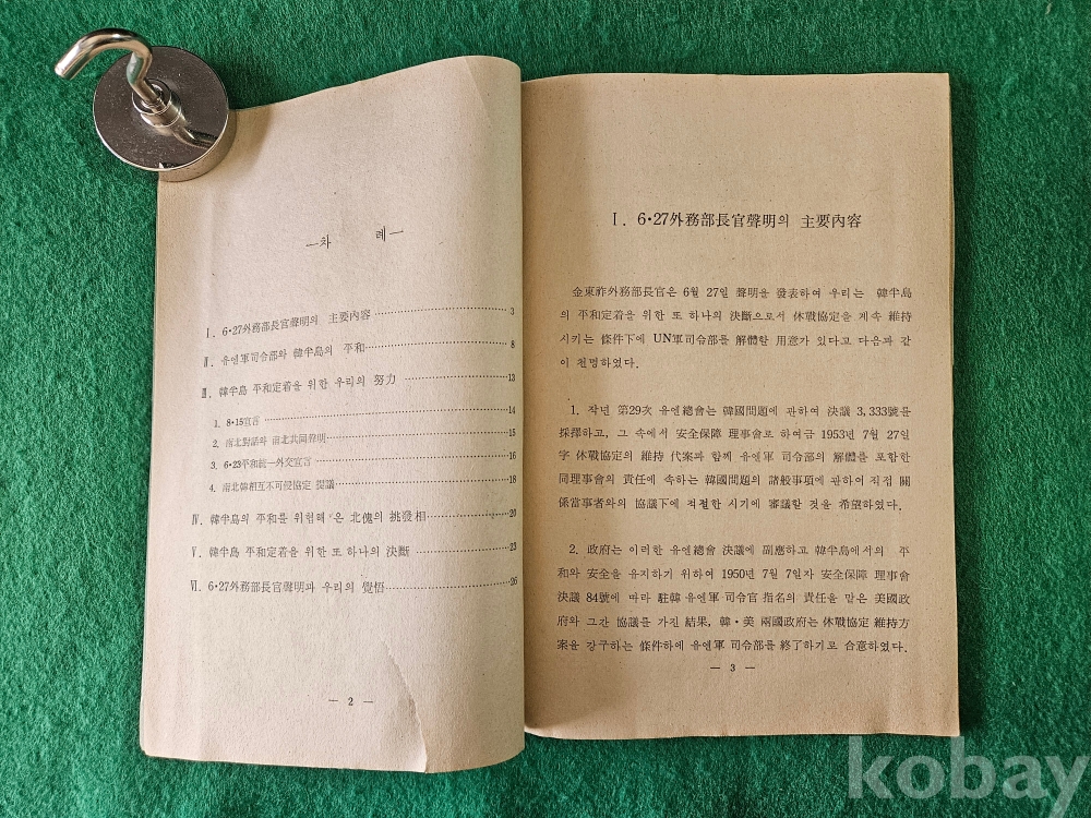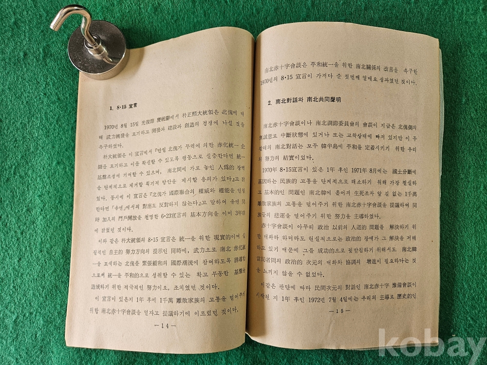 1] 품명 : 문화공보부에서 발행한 " 平和定着 을 위한 또 하나의 決斷 "