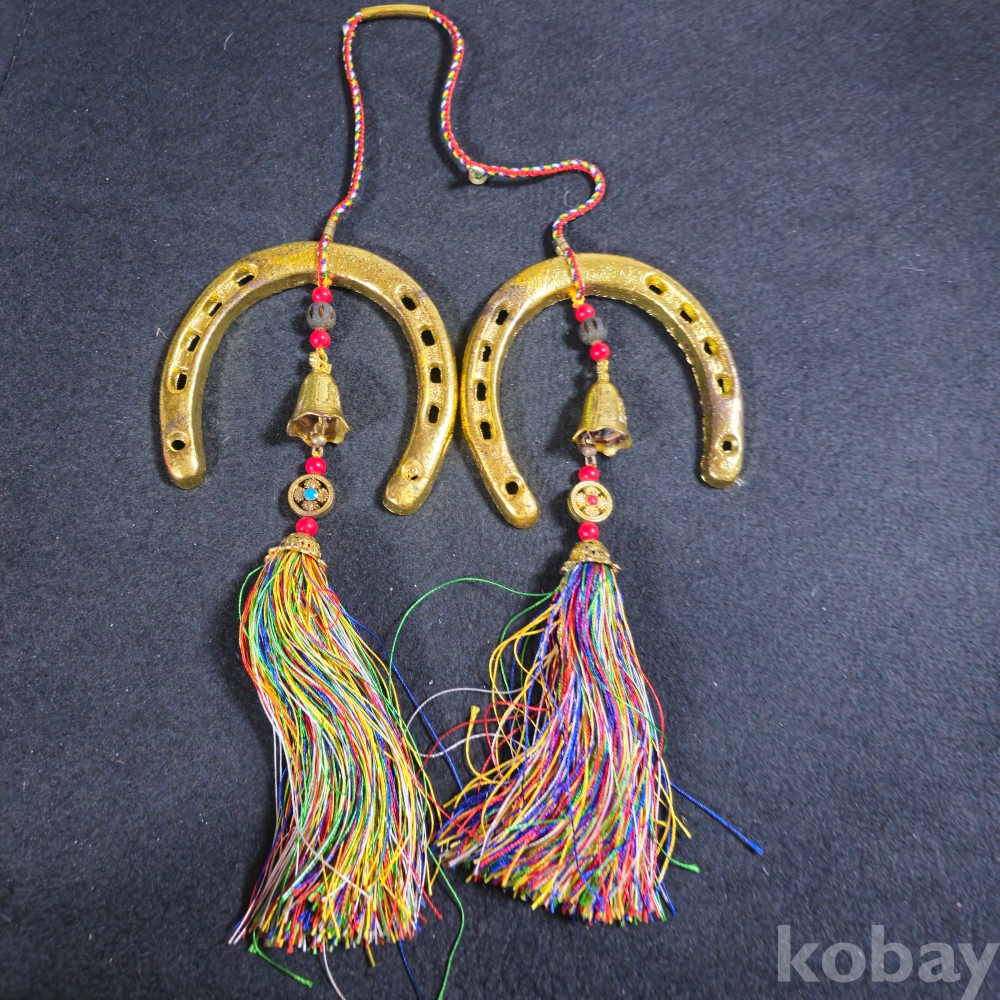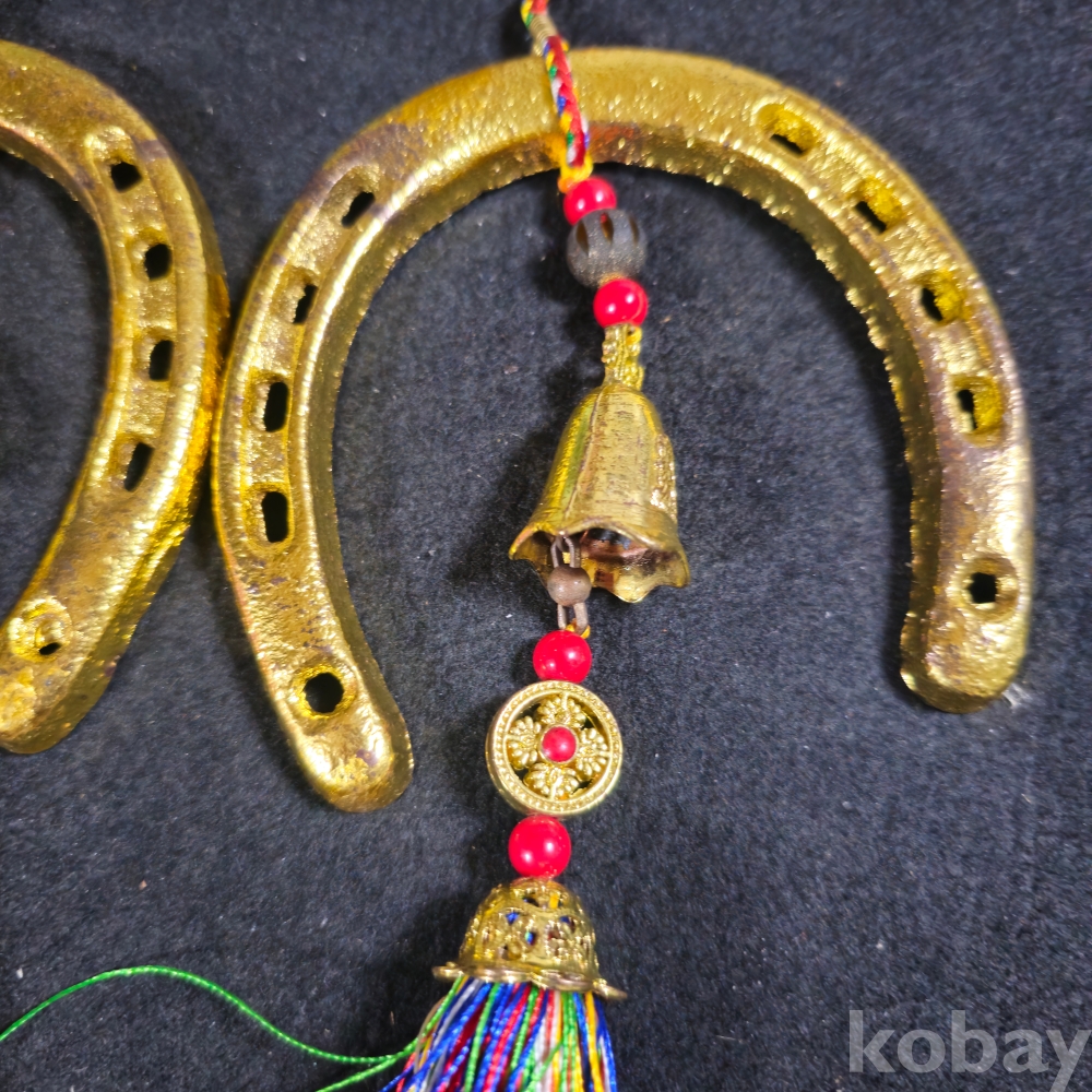 (((근현대사자료))) 오래전 무게감있는 금속재질 말발굽 2개 & 종달린 벽걸이 소품