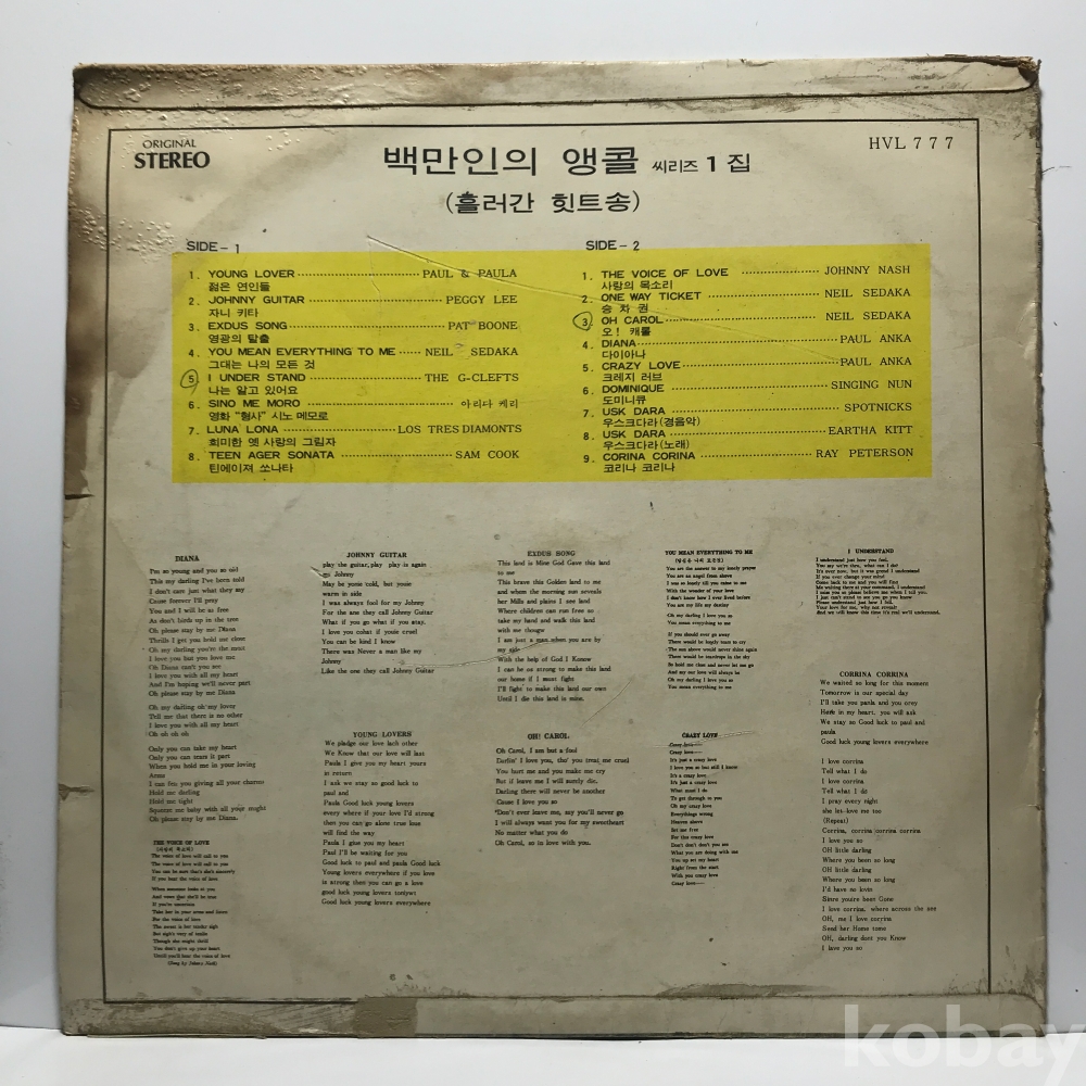 LP 85,000-22 백만인의 앵콜 시리즈 1집 Million Hit Party (컴필레이션) . 자켓 EX- 알판 EX 국내반