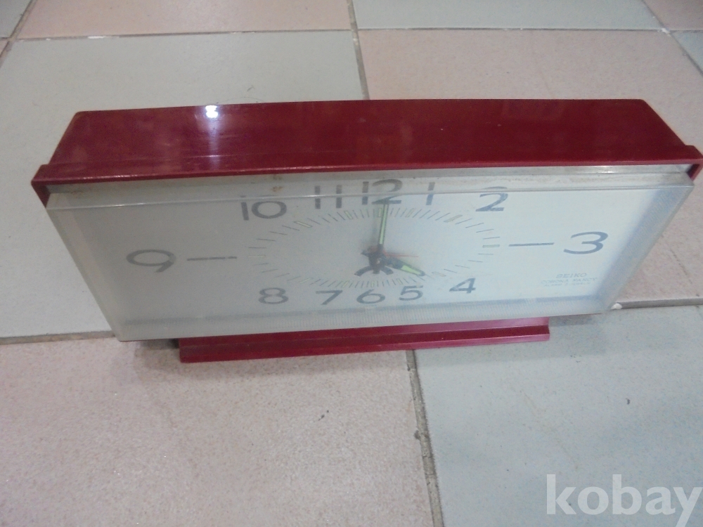 길줌하게 생기고 인기품인 빨간색의 세이코로 바늘이 야광 알람 초 태엽탁상시계 제치부착물은 다있으나 작동여부알수없는 세이코 태엽 고급탁상시계