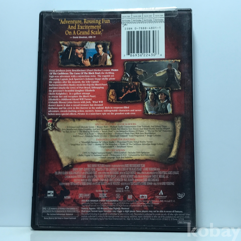 DVD 160-38 Pirates of the Caribbean - The Curse of the Black Pearl . 자켓 : 실사 디스크 컨디션 : 개봉 깨끗