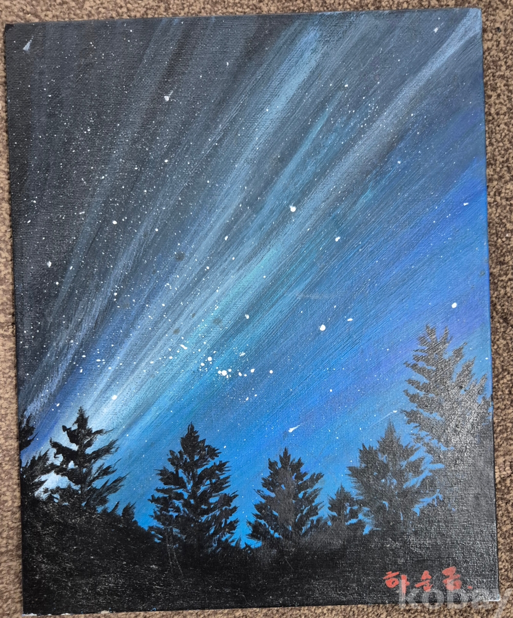 색채감 좋게 잘 그려진 오로라'가 어우러진 아름다운 풍경 유화 작품'이오니 작품 이미지상 싸인'등