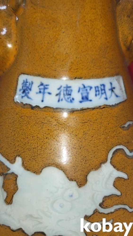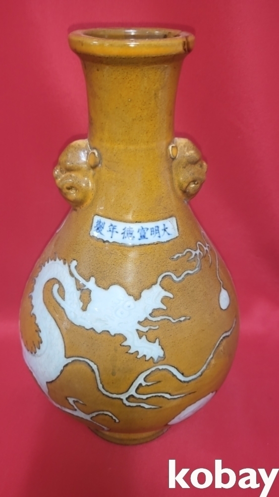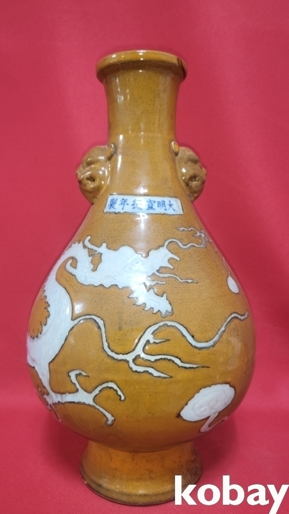 대명선덕연제 백용(白龍)문양 양귀달린 병입니다,