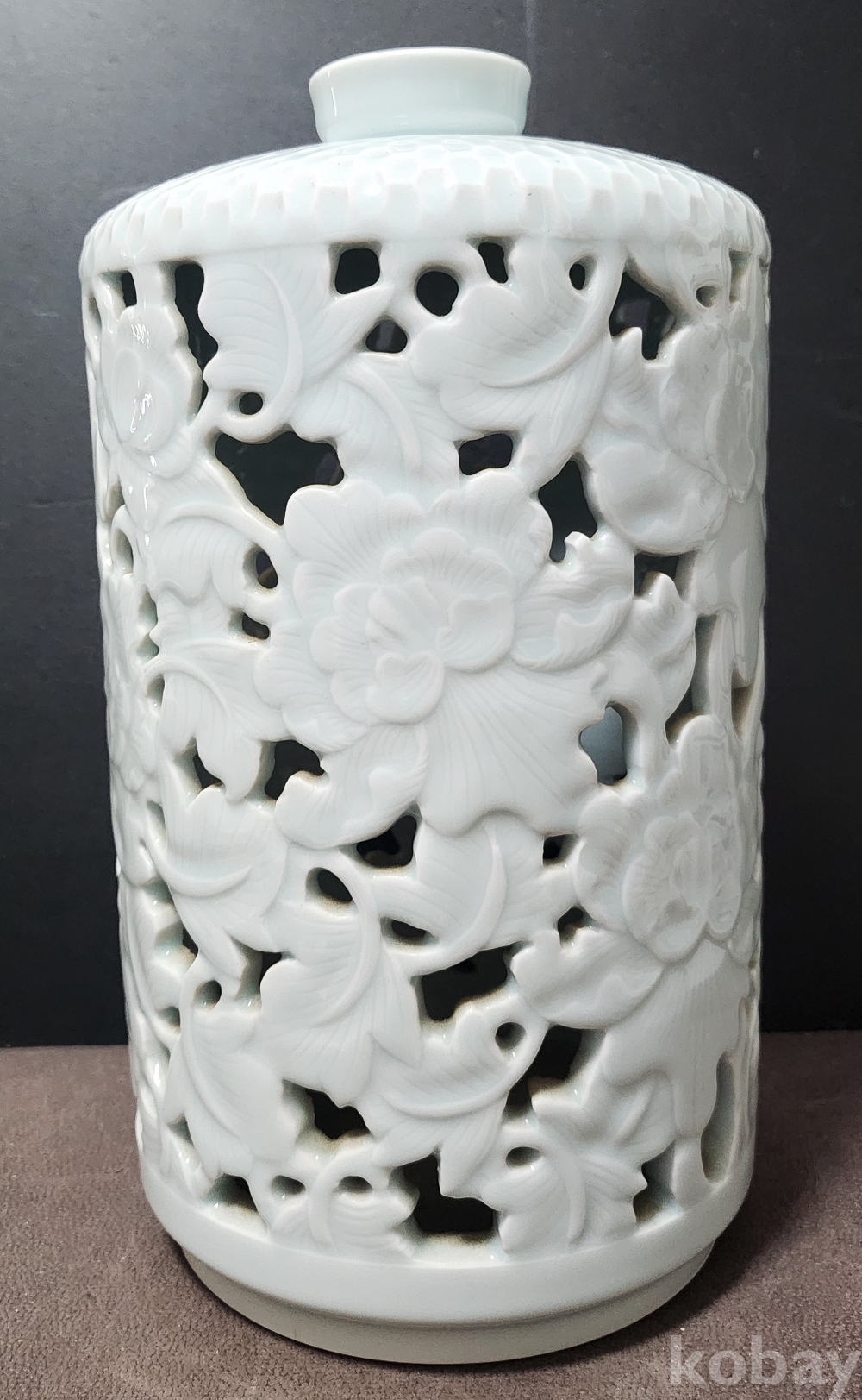 고성도예연구소 古城陶藝硏究所 고성 古城 조병호 曺秉浩 백자투각모란문호 白磁透刻牡丹紋壺 < 수결 박스 완비 >