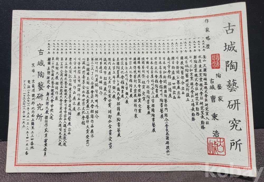 1982년 서울신문 도자공모전 출품 / 한일물산전 4회 / 일본 同和신문 한국도예부문 초대