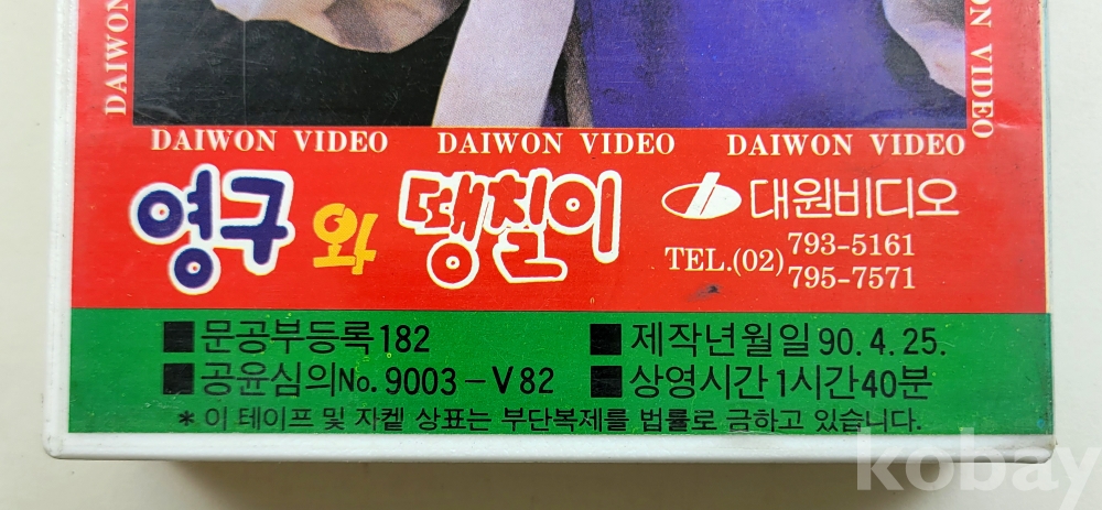 물 품 명 | 심형래 / 영구와 땡칠이 / 영구야 씨리즈 제1탄 / 1990년 / 대원비디오 |