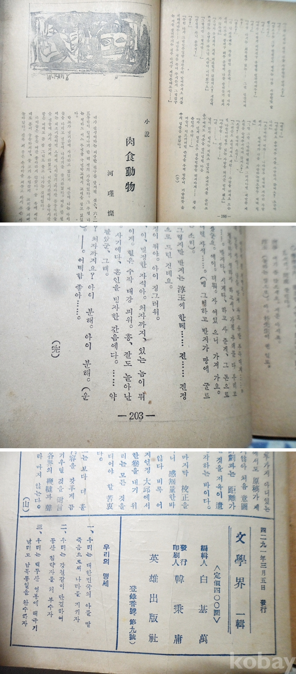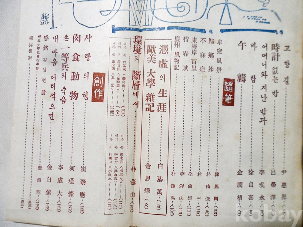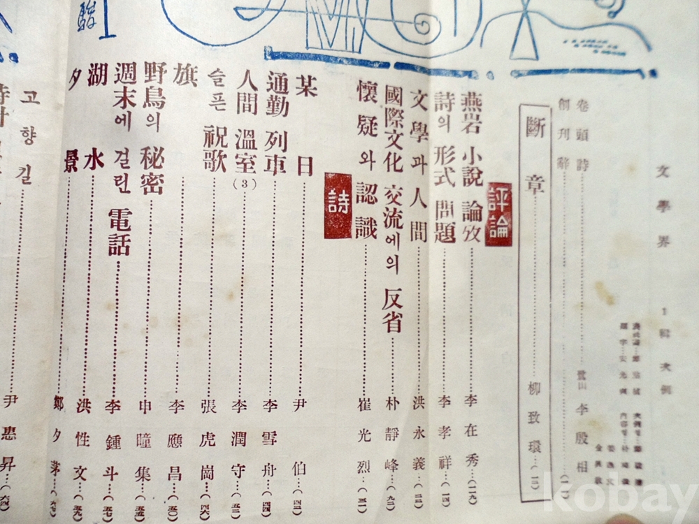 1958년 문학계(文學界)  창간호 특별전
