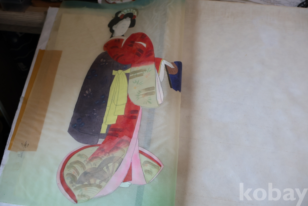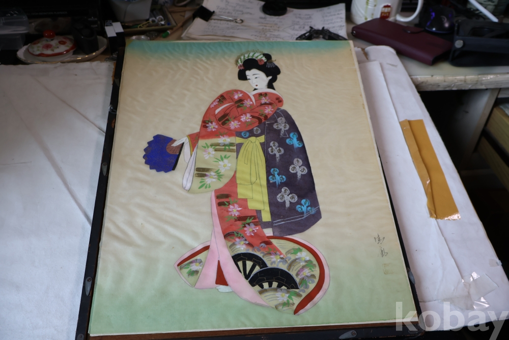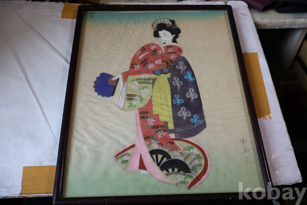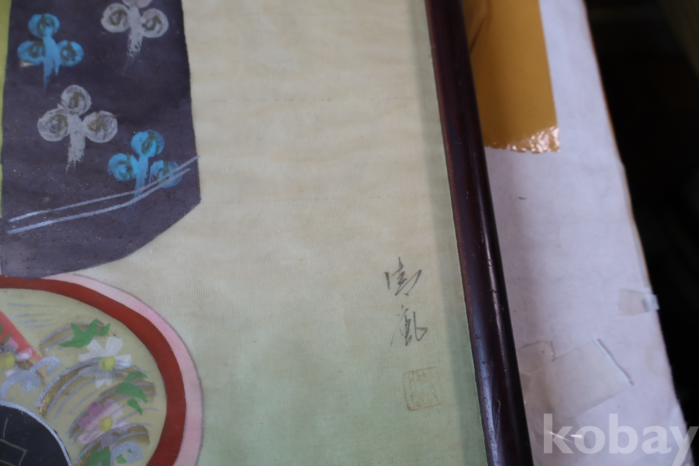 1930대 비단 화 이며 전통적인 일본 액자를 가진 명물 임니다 액자는 세월의 흔적이 보임니다 사진 참조 하세요