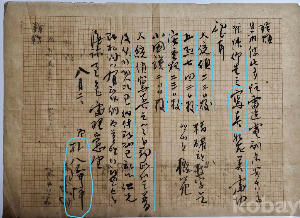 ◈ 8월 2일에 박팔봉(朴八峰)이 보낸 국한문혼용 편지.