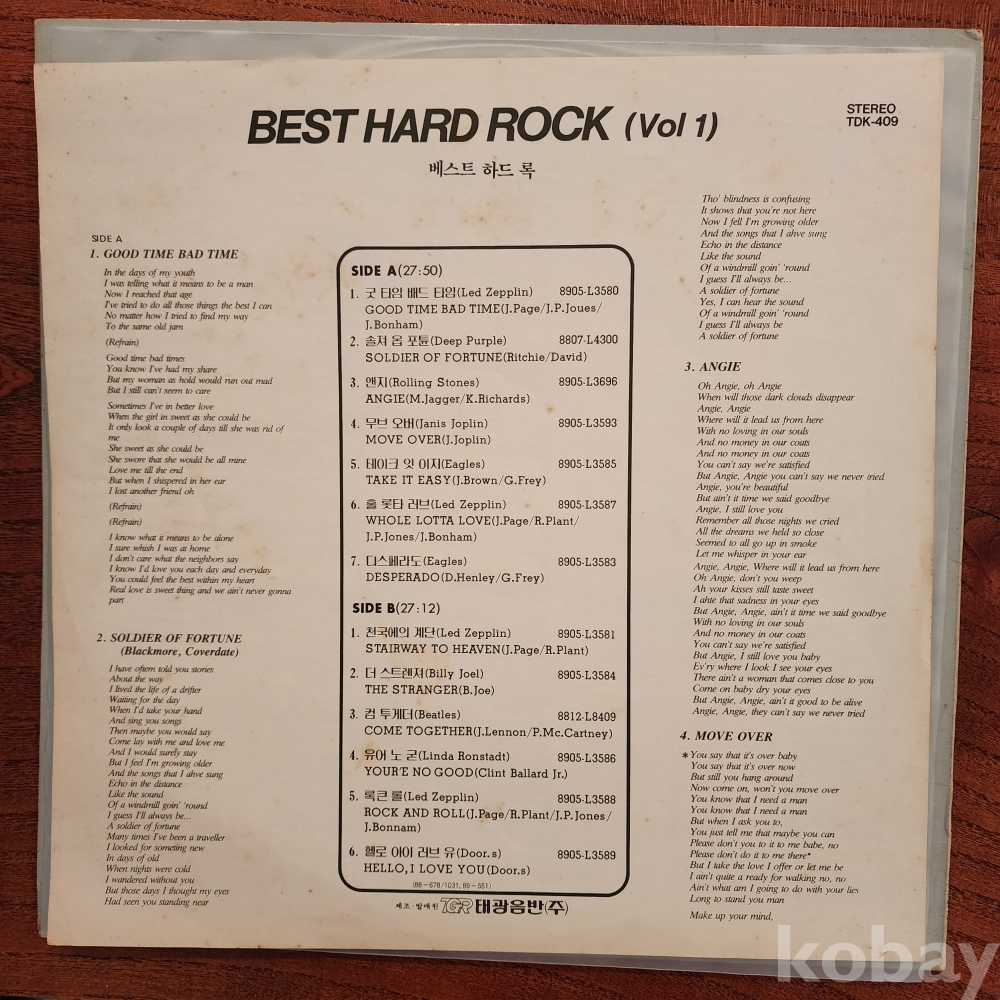 락 모음집, 레드제플린/딥퍼플/롤링스톤즈/제니스조플린/이글스/비틀즈/빌리조엘