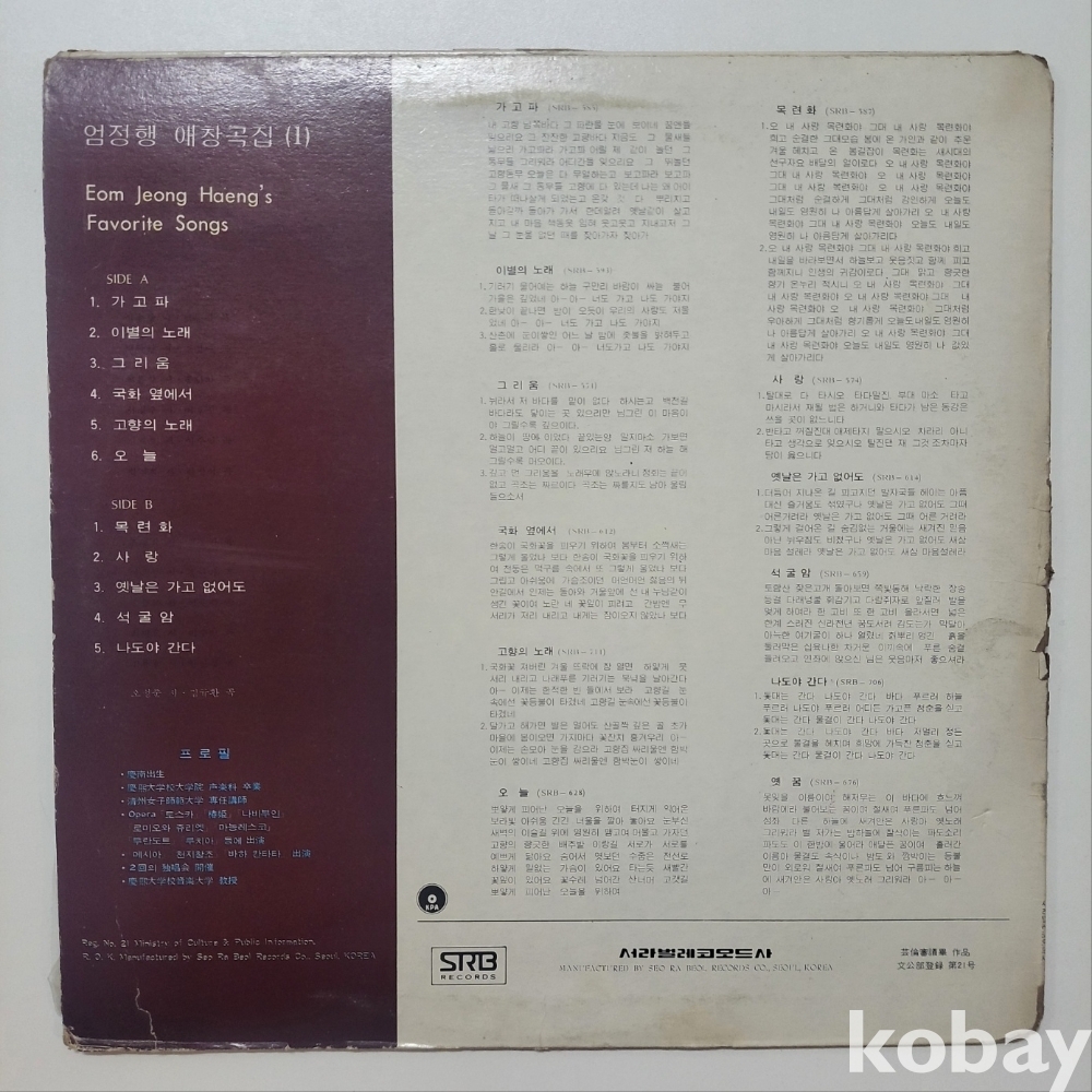 | 자켓상태 | EX : 약간의 마모, 모서리 찢김 존재 | 음반상태 | EX : 재생에 영향 없는 가벼운 기스 존재 | 발매정보 | 초반 | 가사지여부 | 무 |
