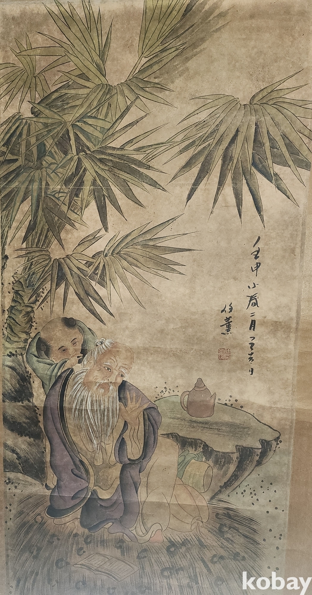 높은 연대를 갖춘 신선도(神仙圖) 족자 입니다,