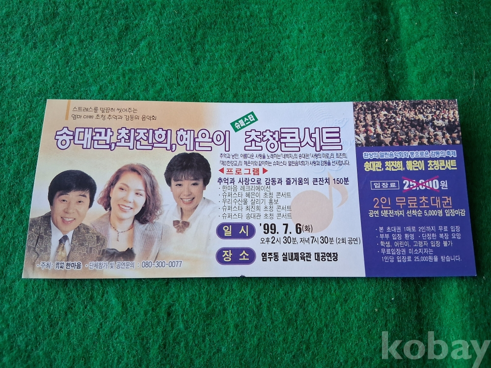 송대관, 최진희, 혜은이 초청콘서트 초대권-1999