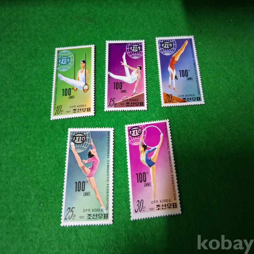 북한 1981년 국제연맹체조창립100주년기념 우표5종 미사용