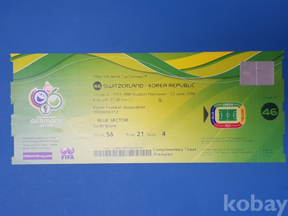**** 2006 FIFA 월드컵 독일 티켓/스위스-대한민국/G조 - FIFA WM-스타디온 하노버 - 2006년 6월 23일