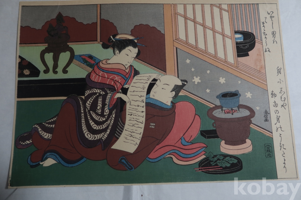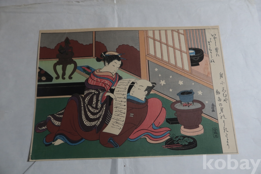 하루노부의 명작 임니다 소화 초/중기의 목판화 이며 일본 목판화의 섬세 정교한 극히 귀한 명화 임니다 1960전후의 목판화