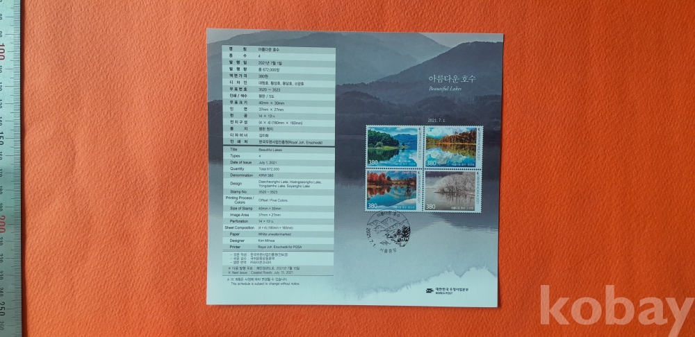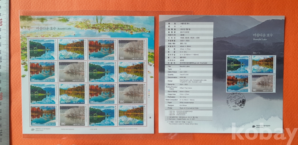 2021년 아름다운 호수 16매 전지(안내카드 포함) 입니다.