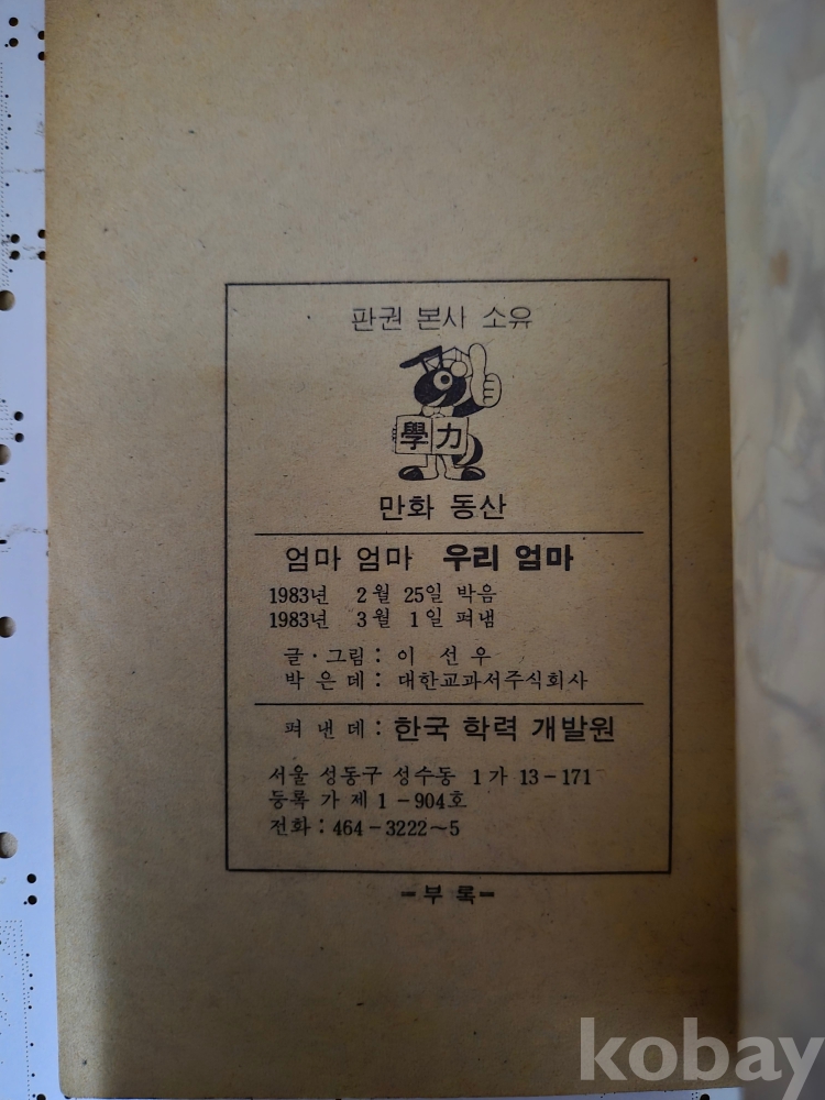 만화 동산 단편만화 엄마엄마 우리엄마 이선우 한국학력개발원 1983