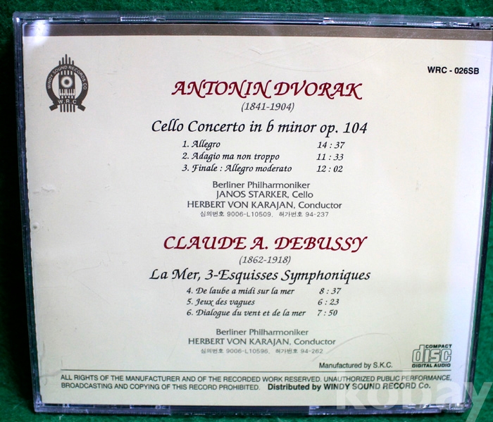(CD) Dvorak : Cello concerto in b minor op.104 / Debussy : La Mer 3-Esquisses symphoniques...