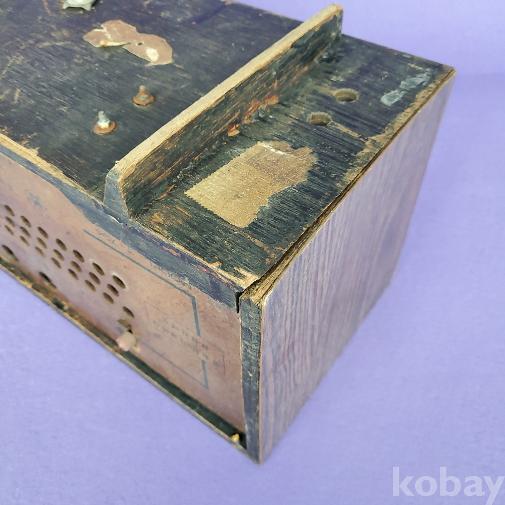 오랜 세월을 거치며 나무 케이스(우드 캐비닛)의 무늬목이 벗겨지고 낡았지만, 그 낡음조차도 치열했던 우리 근현대사의 훈장처럼 느껴지는 물건입니다. 내부는 당시의 부품들이 그대로 남아 있어, 빈티지 라디오를 복원(리스토어)하시는 전문가분이나 근현대사 박물관, 혹은 레트로한 분위기의 공간 연출을 원하시는 분께 귀한 자료가 될 것입니다.
