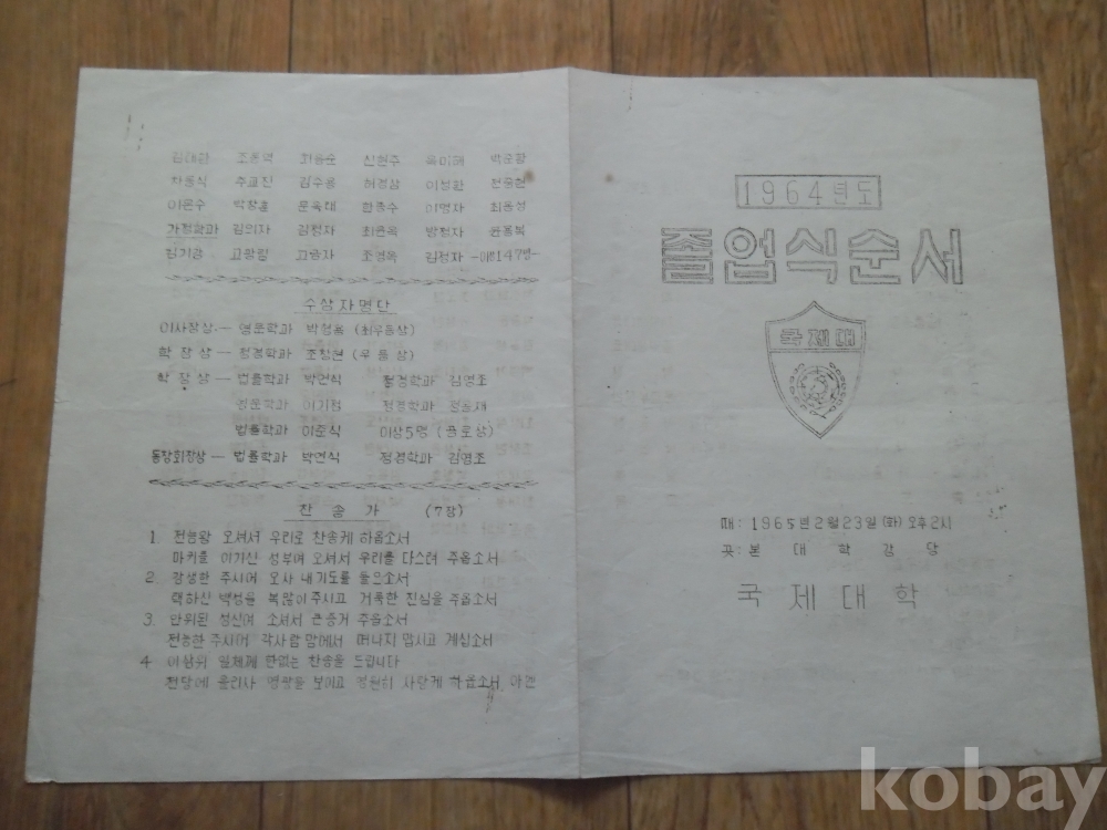 1965년 국제대학 졸업식 순서